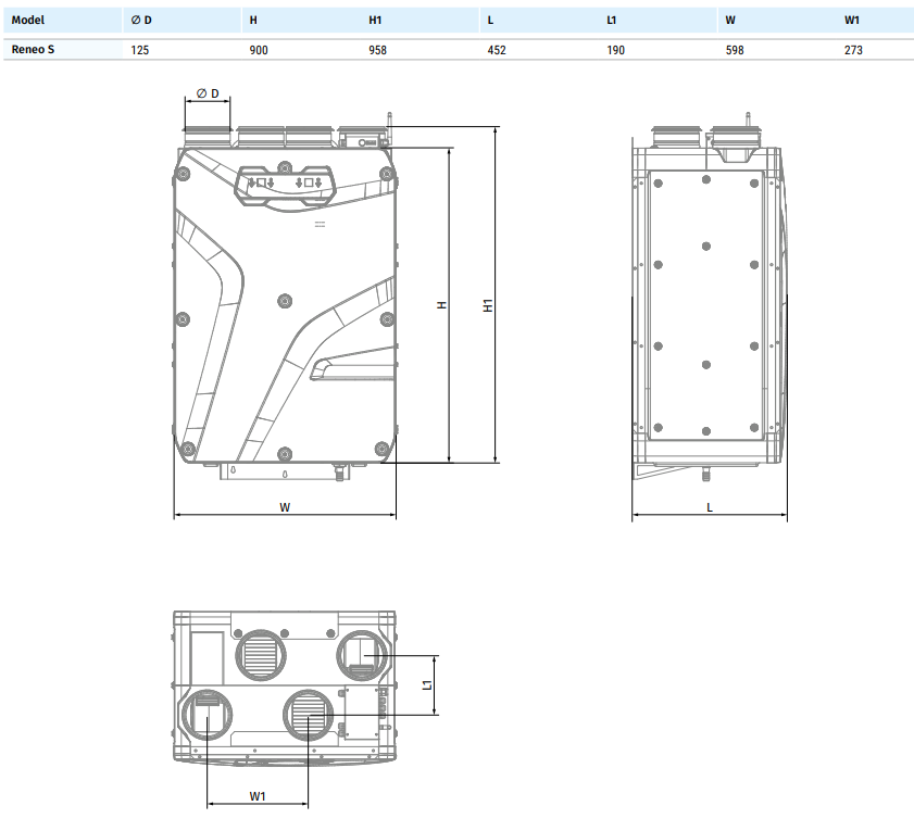 Blauberg Reneo SE oldalfali hővisszanyerős szellőztető gép méretei